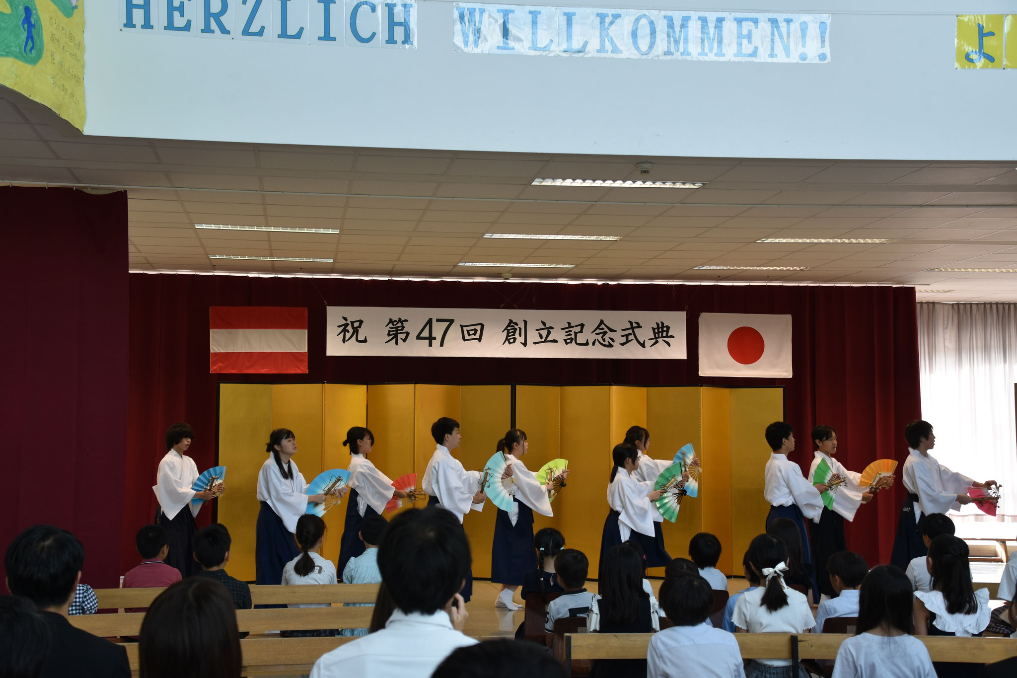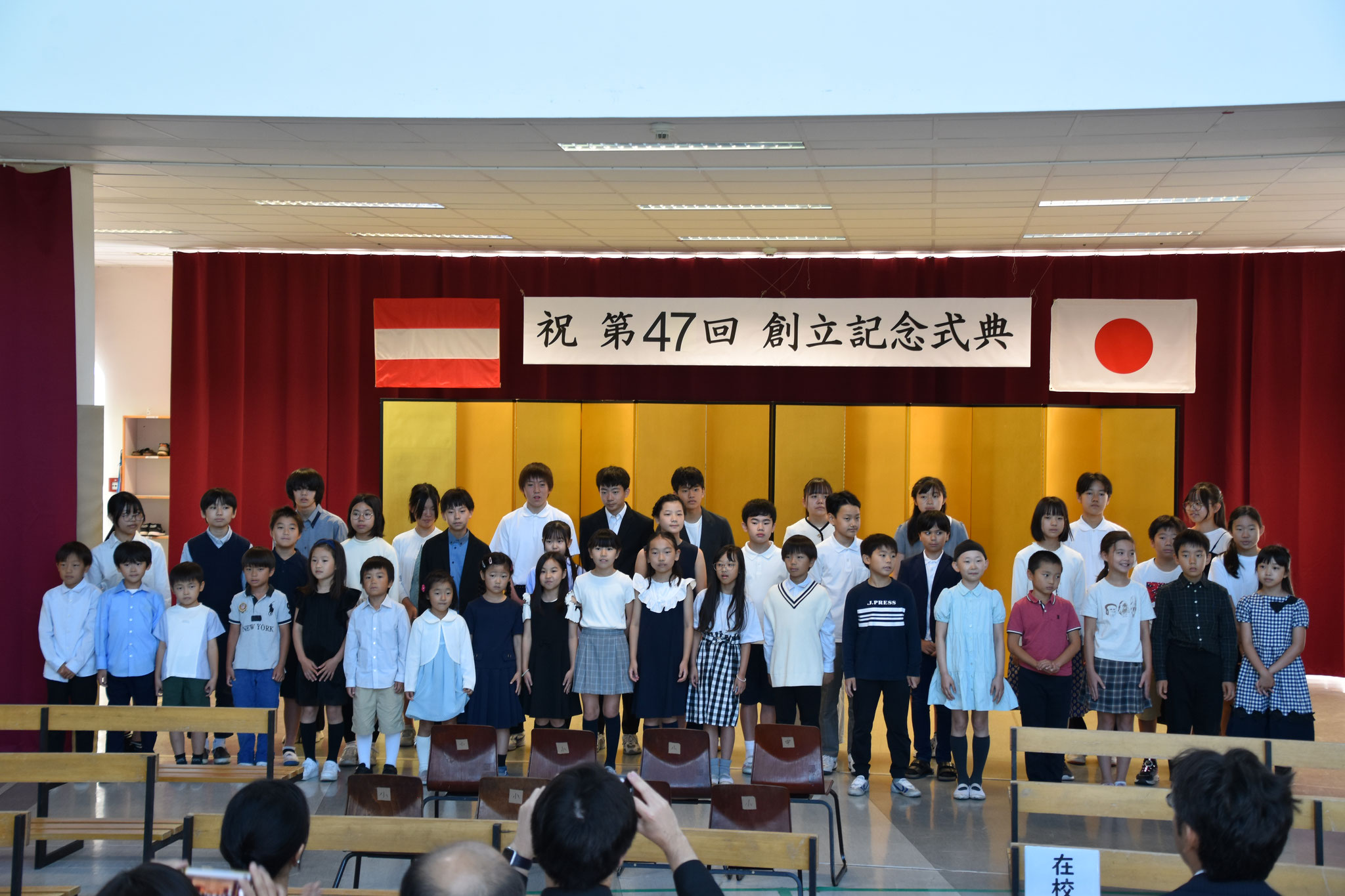 ウィーン日本人国際学校創立47周年の創立記念式典が執り行われました。式典に先立って、中学生が御神楽を披露しました。先輩たちから引き継いできた御神楽をみなさまの前で披露することができ、上級生として立派な姿を見せてくれました。その後、式典では、たくさんのご来賓の方々から、47周年のお祝いの言葉をいただきました。また、児童の作文発表では、小学部2年生が「小学2年生になって頑張ったこと・頑張りたいこと」と題し、これまでの学校生活の取り組みや今後の目標を堂々と発表することができました。最後は、全校児童生徒による合唱「Zum Geburtstag viel Glück」で締めくくりました。これからも、ウィーン日本人国際学校での生活が充実した日々となるよう、みんなで力を合わせていきましょう。